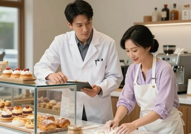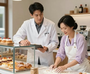David Kim, a meticulous pharmacist, and Lisa Ping, a dedicated baker, share a quiet moment in her bakery, their connection deepening over pastries and unspoken possibilities.