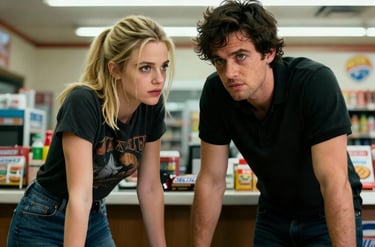 Marta seeks out Davy at his late-night shift, their unspoken attraction crackling in the quiet store. Will she confess her feelings, or keep him guessing?