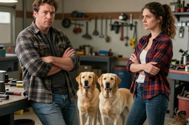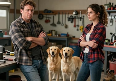 In Harry’s garage, Hilda and Harry witness their dogs mating, their unspoken attraction mirroring the primal scene. A brush of skin ignites a moment of surrender, leaving them suspended in desire.
