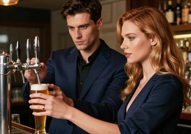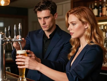 At a dimly lit bar, June nervantly steps into Jeffrey’s domain, learning cocktails under his precise guidance. Their fleeting touches and whispered advice ignite a charged atmosphere as she pours her first drink, stirring unspoken desire and subtle power shifts.