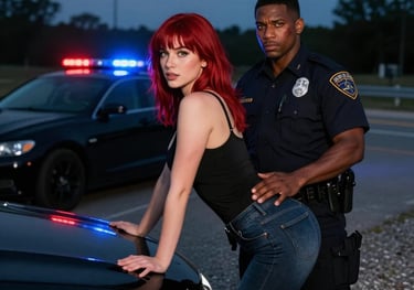 Pulled over by a rugged cop, Carmen turns the tables with a seductive challenge. But when Officer Hank takes control, their encounter becomes a heated battle of wills and desire.