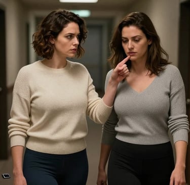 Laura reached for her, her fingers brushing against Emma's shoulder. Emma flinched away, standing on unsteady legs, her body trembling.