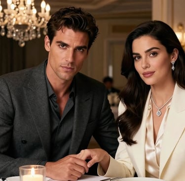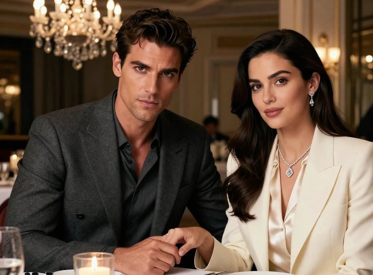 A waiter in a crisp black tuxedo approached, pouring a glass of Bordeaux with practiced precision. Aaron barely acknowledged him, his attention drawn to the entrance as a woman stepped inside. Lucy Altman. The name had been repeated to him enough times by the elite matchmaking service that had arranged this meeting, but seeing her in person was something else entirely. She moved with an effortless grace, her long dark hair cascading in loose waves over the shoulders of her tailored cream blazer, the fabric hugging her slender frame with an understated elegance. A single diamond pendant rested just above the collar of her silk blouse, catching the light as she turned her head slightly, her sharp cheekbones casting delicate shadows. Aaron exhaled slowly, his fingers tightening imperceptibly around the stem of his wineglass.
